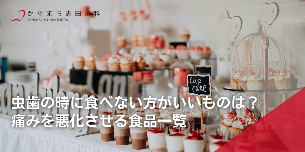具体的には、ケーキ、チョコレート、キャンディなどの甘いお菓子、清涼飲料水、スポーツドリンク、加糖のコーヒーなどは、大量の糖分を含んでいます。これらを摂取すると、口内の酸性度が一気に高まり、虫歯の痛みを誘発・悪化させるリスクが高まりますので、虫歯で歯が痛いときは避けるようにしましょう。